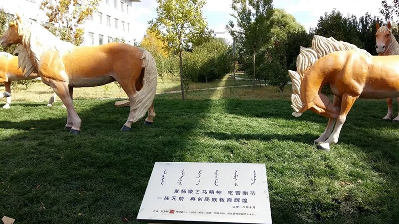 赤峰蒙中校園景觀雕塑“發揚蒙古馬精神” ?