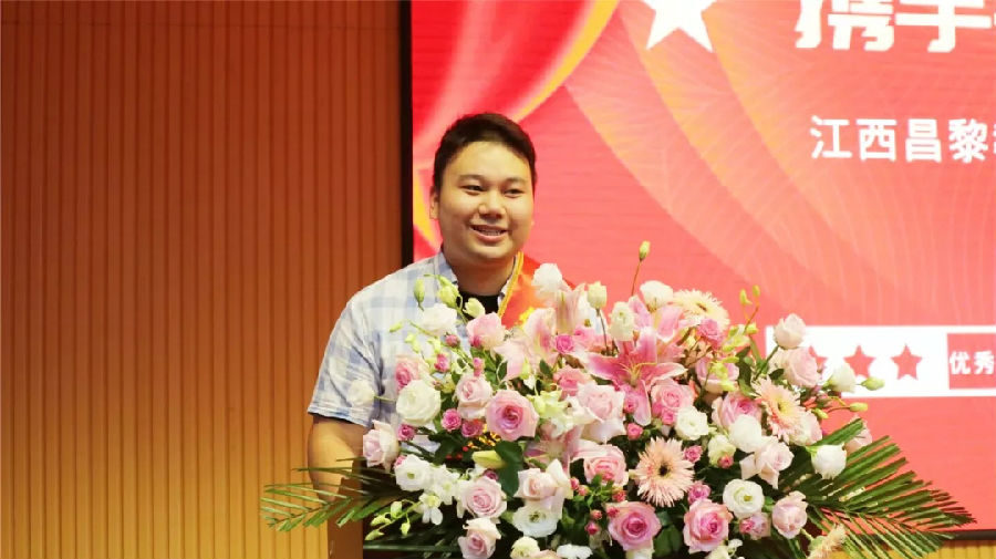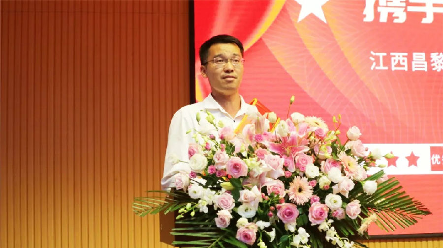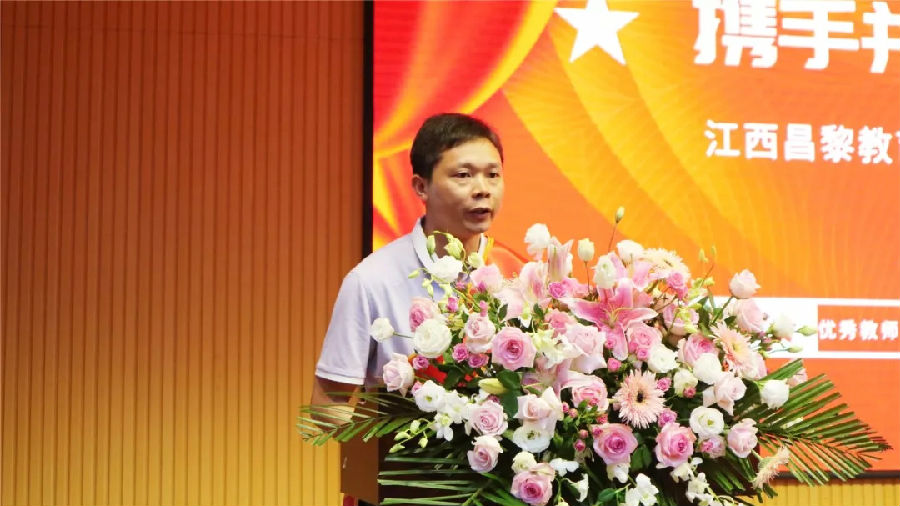 ▲宜春昌黎實驗學校優(yōu)秀教師代表何斌發(fā)言