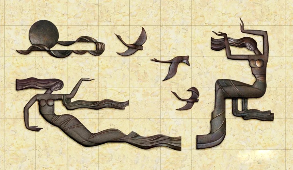 《夕陽飛天》(廣電部 鍛銅浮雕 12平方米)